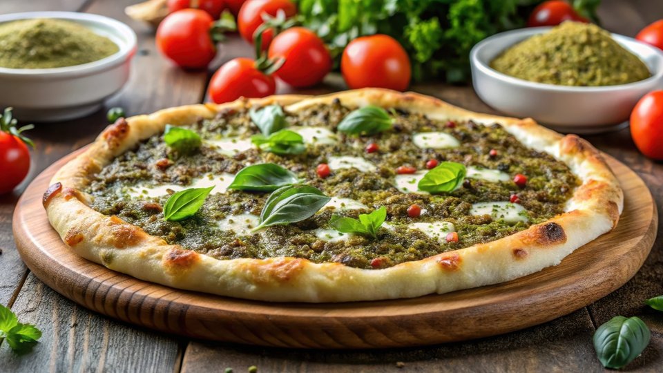 Toppings for a peso pizza can include grilled chicken or shrimp, sun-dried tomatoes, artichoke hearts and fresh mozzarella. This pizza brings a fresh, herbaceous flavor that's a delightful change from tomato-based options.