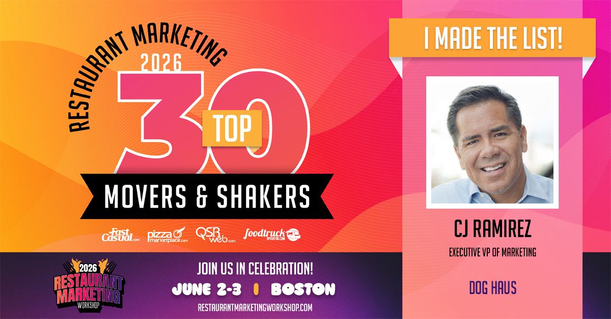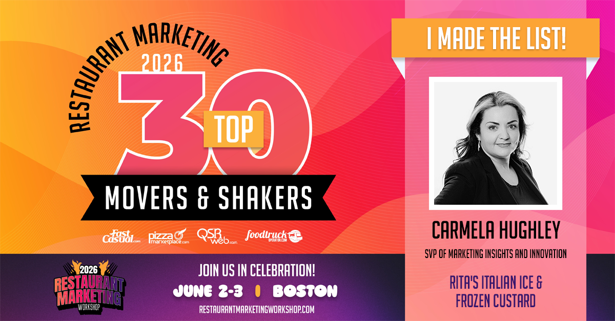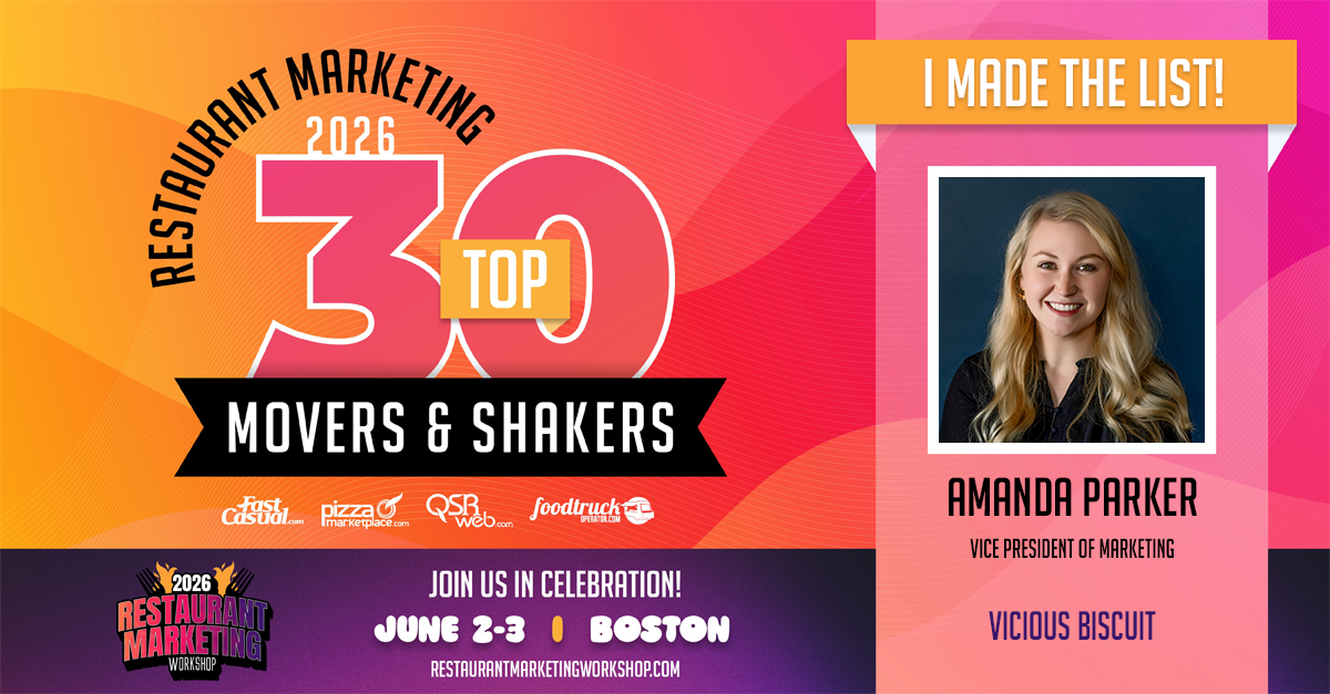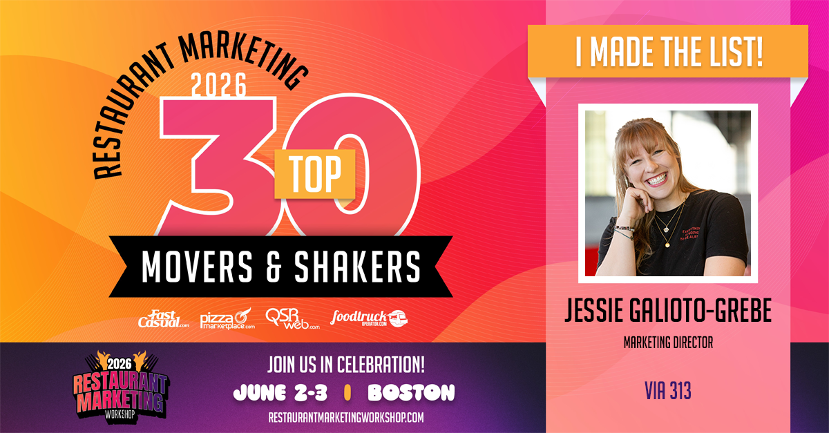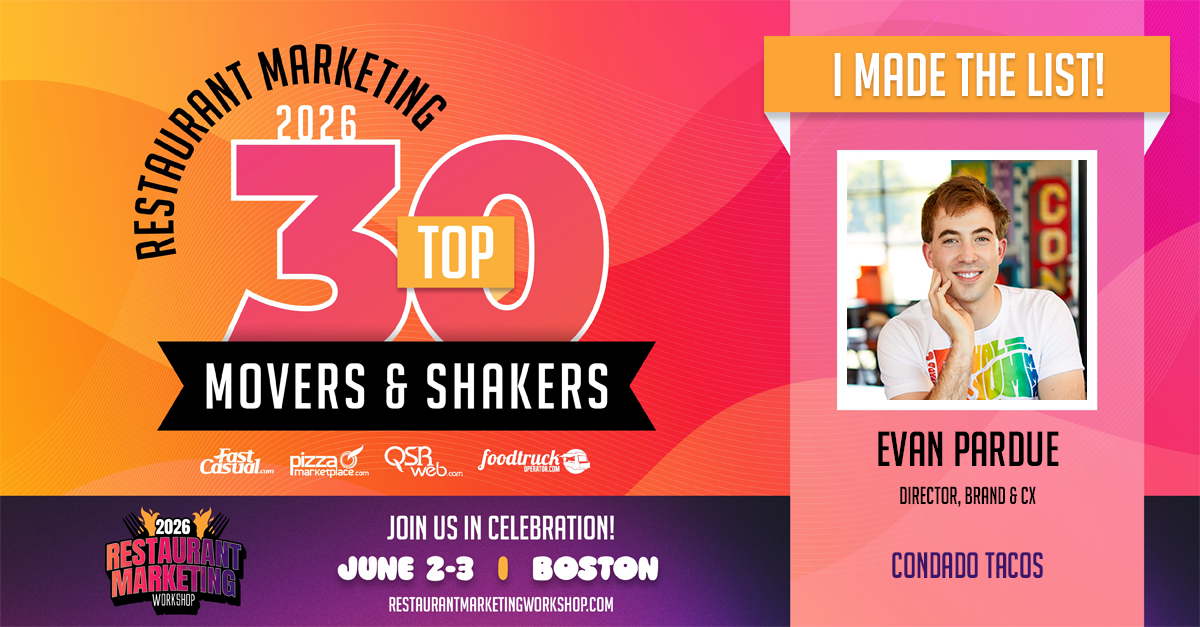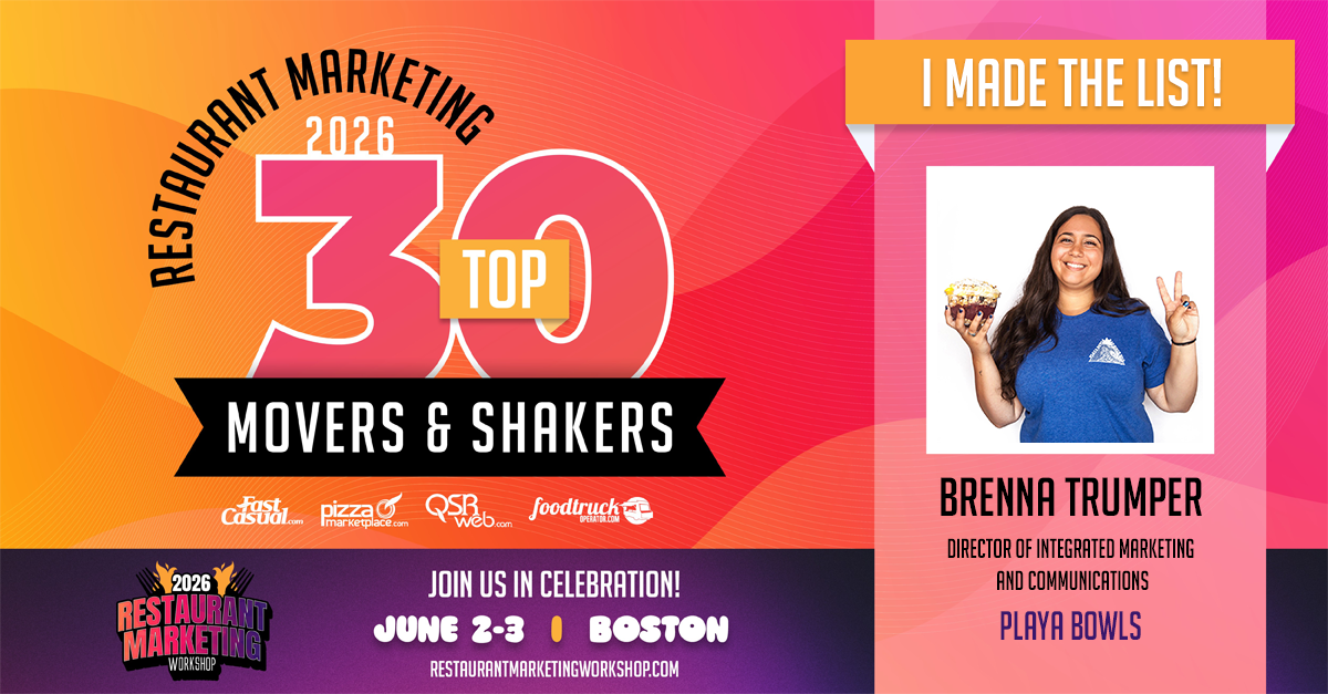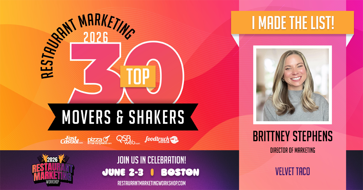 We’re proud to honor the 2026 Restaurant Marketing Top 30 Movers & Shakers, who will be recognized at the Restaurant Marketing Workshop on June 2–3 in Boston. Registration is open.