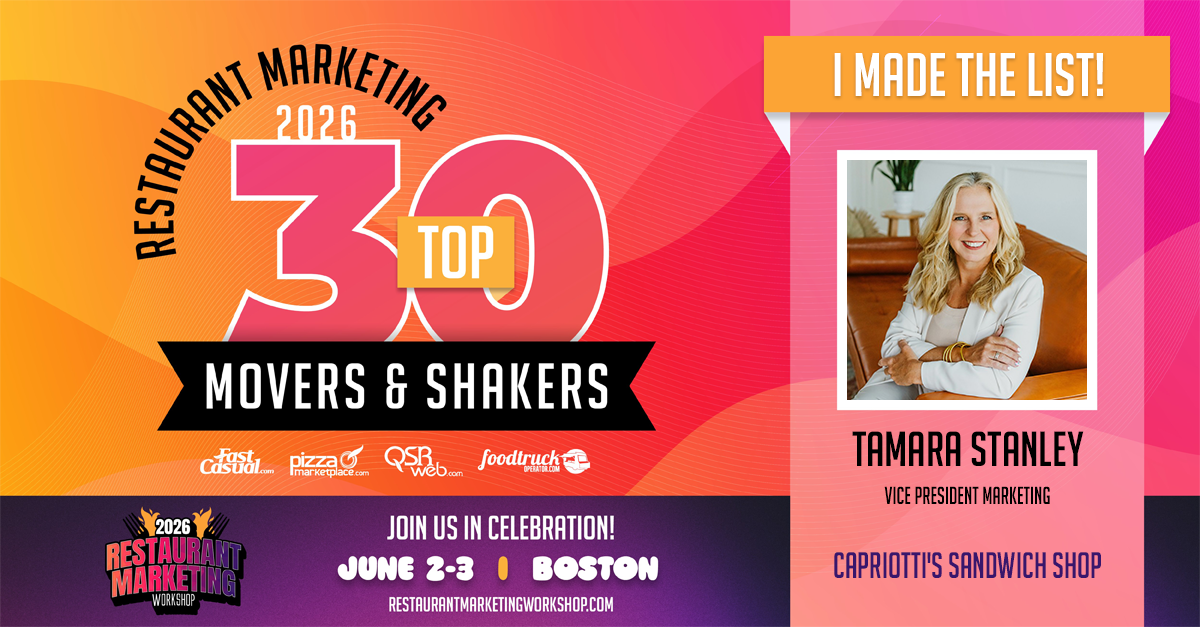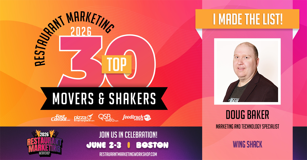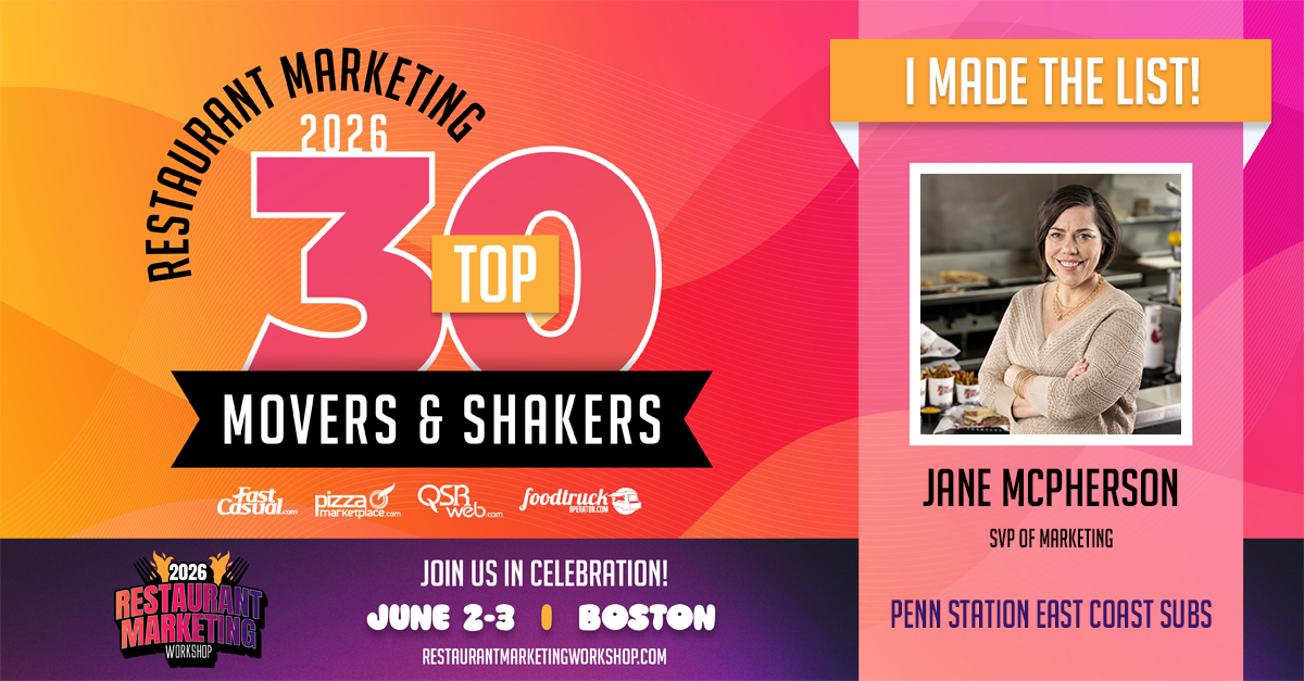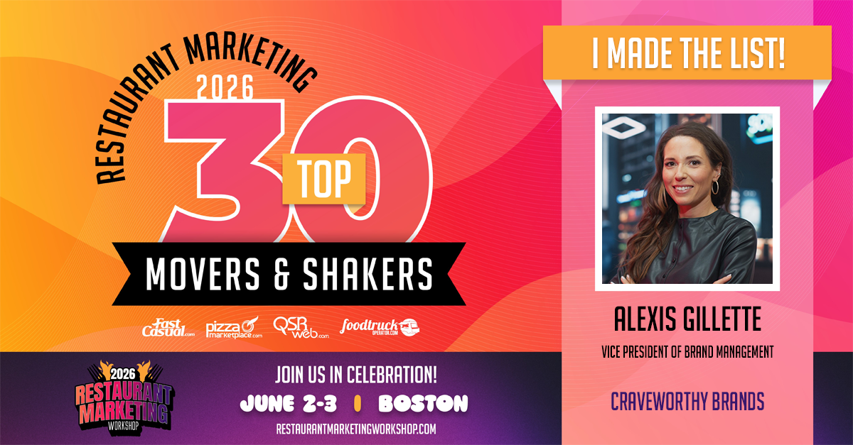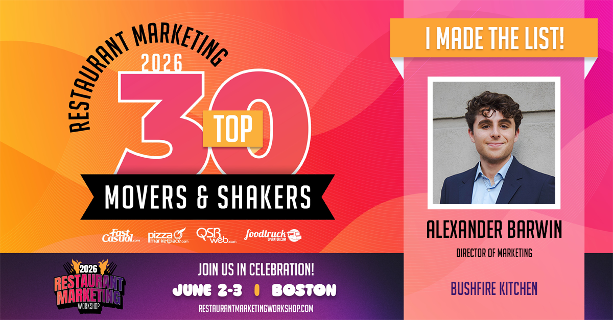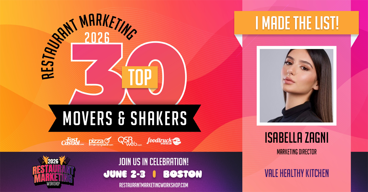 We’re proud to honor the 2026 Restaurant Marketing Top 30 Movers & Shakers, who will be recognized at the Restaurant Marketing Workshop on June 2–3 in Boston. Registration is open.
