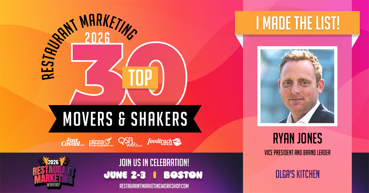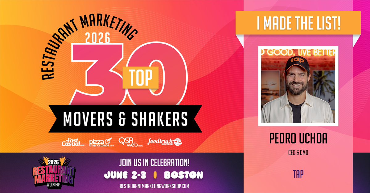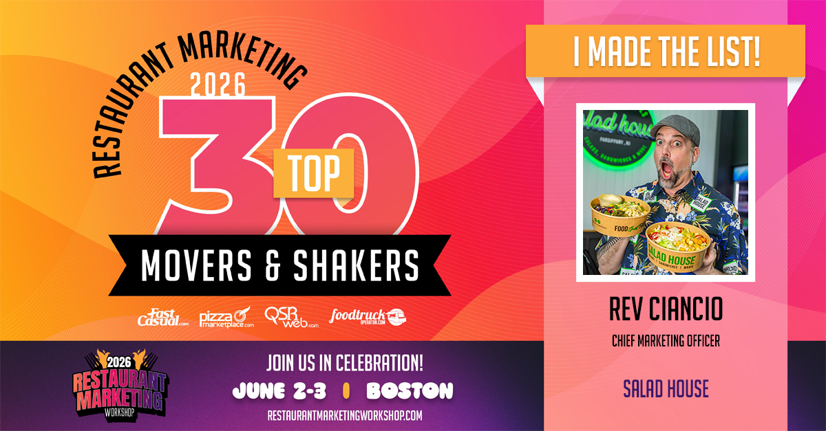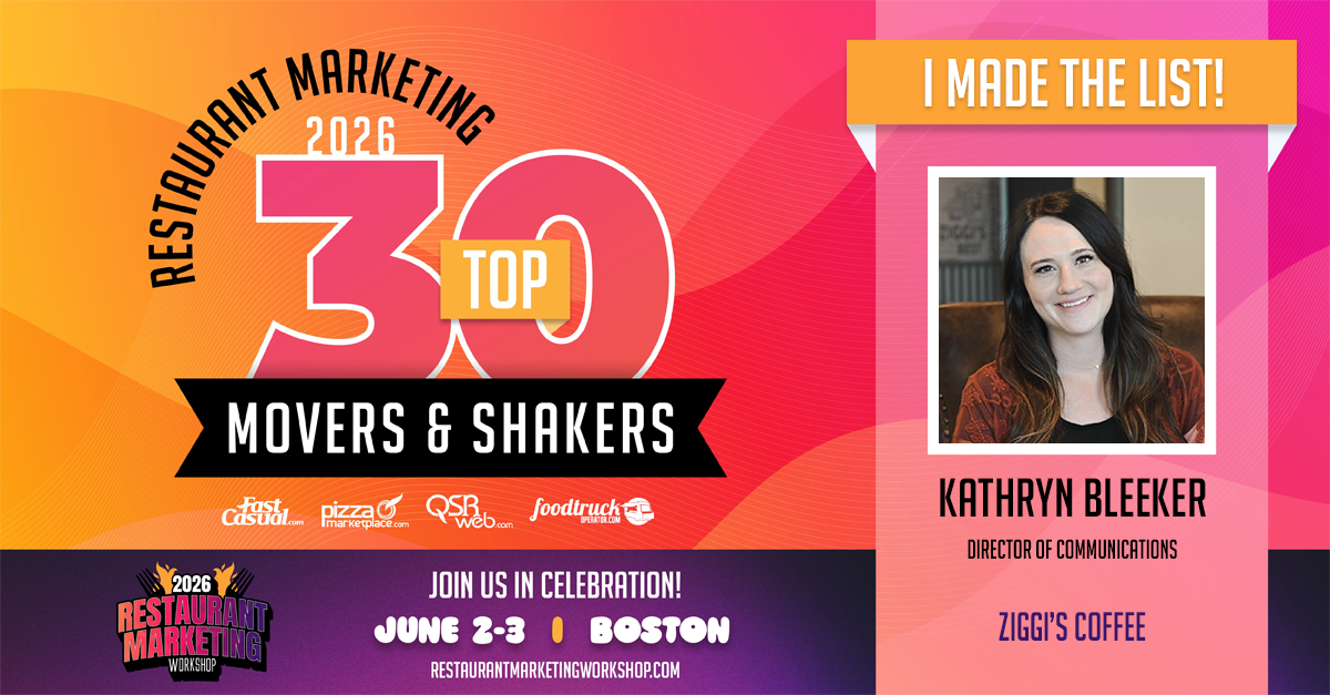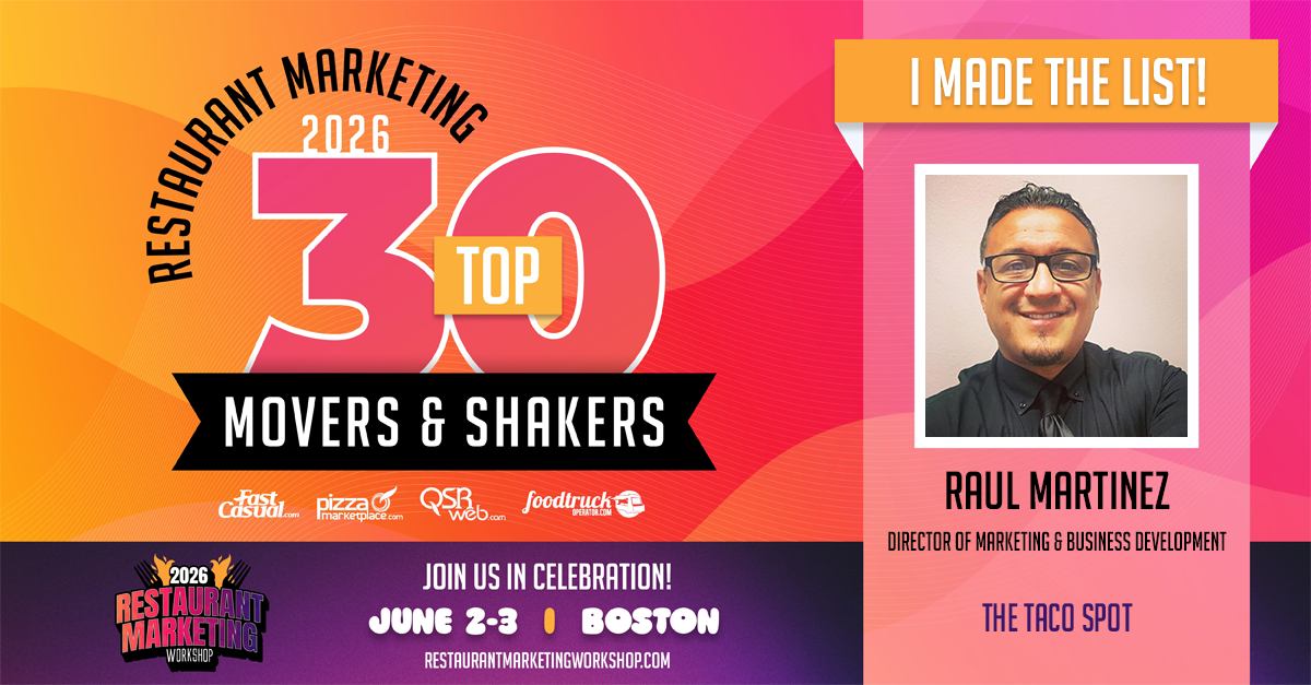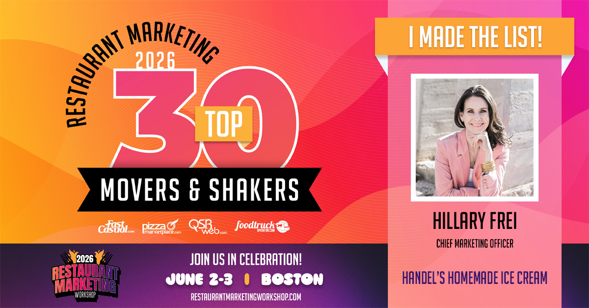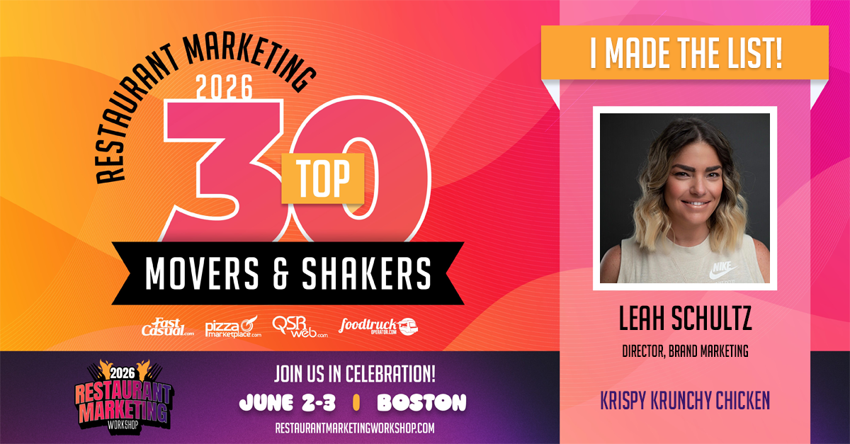 We’re proud to honor the 2026 Restaurant Marketing Top 30 Movers & Shakers, who will be recognized at the Restaurant Marketing Workshop on June 2–3 in Boston. Registration is open.