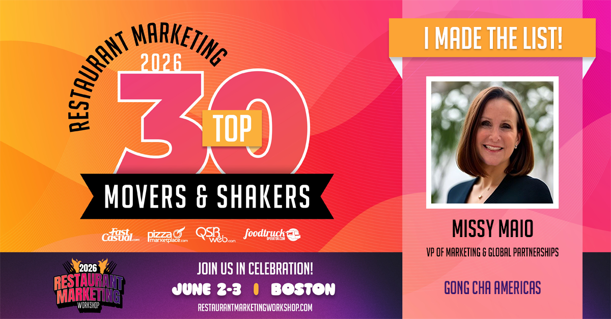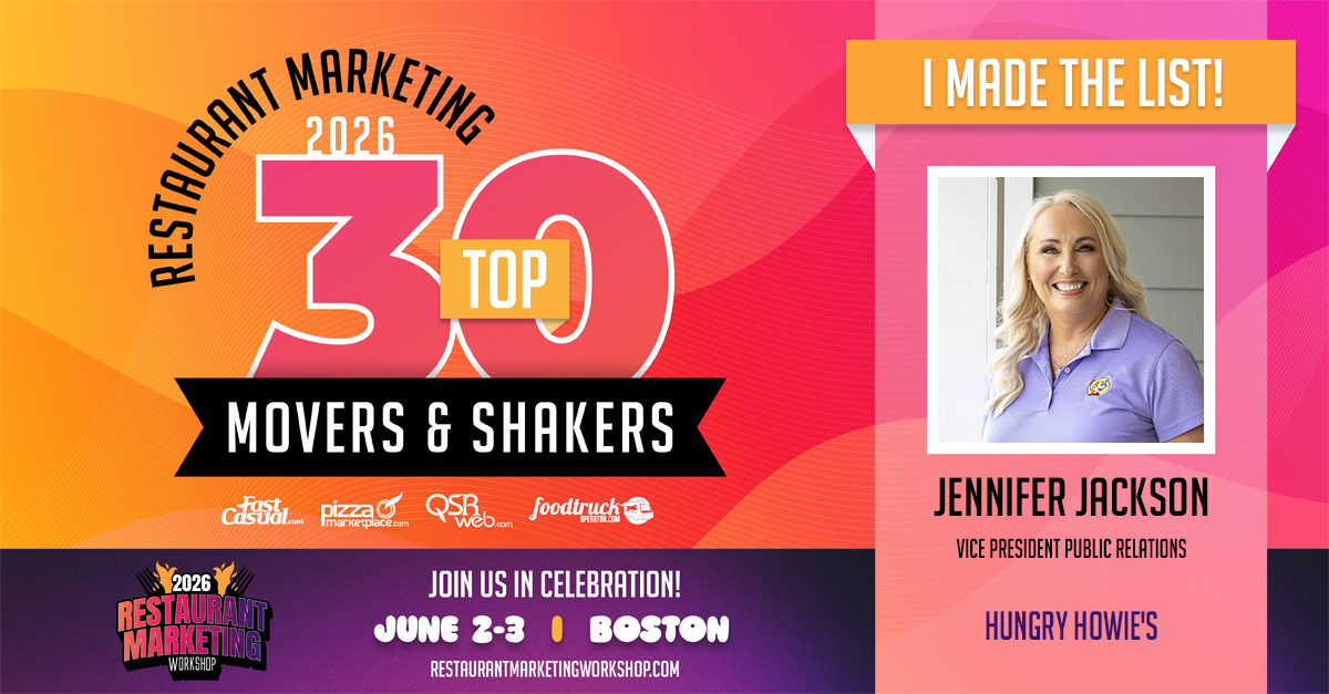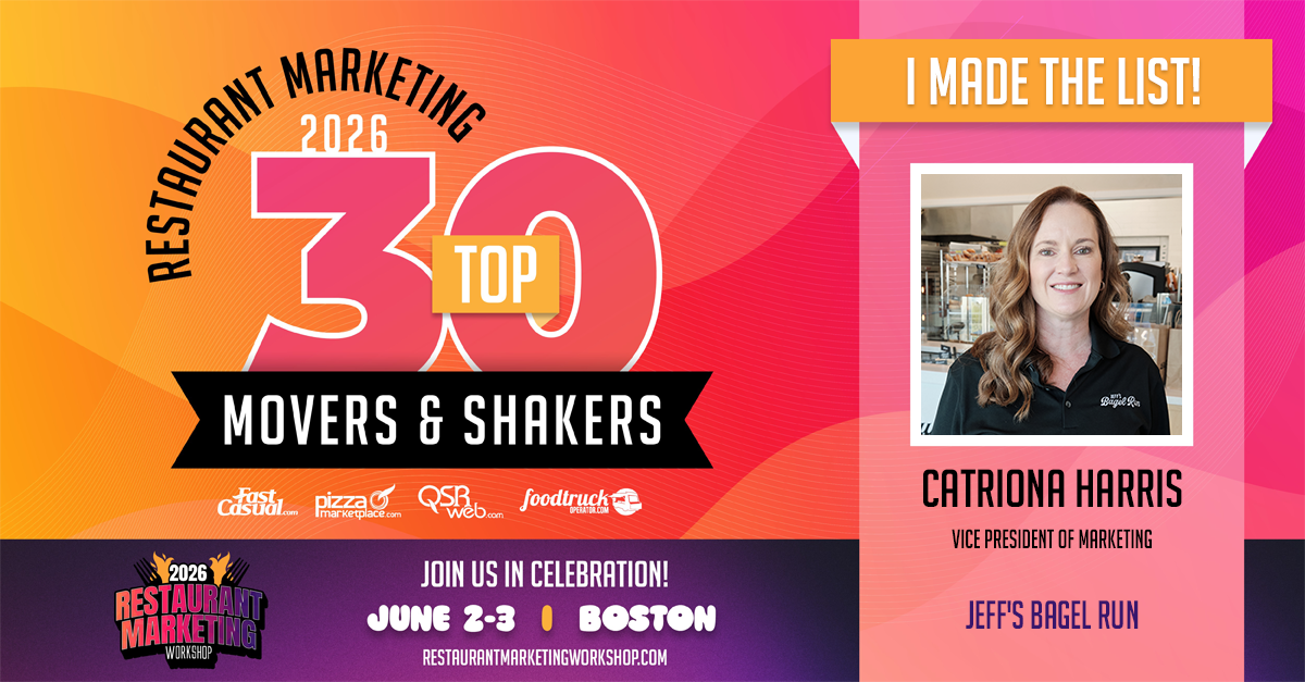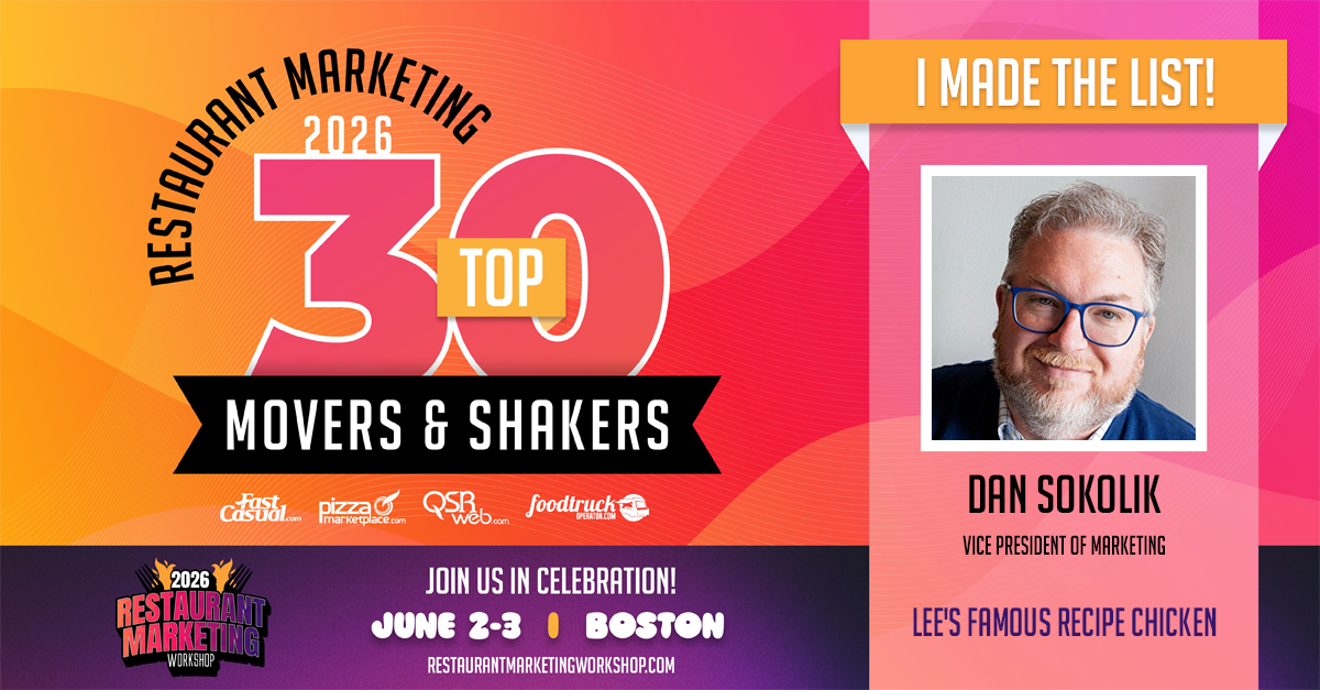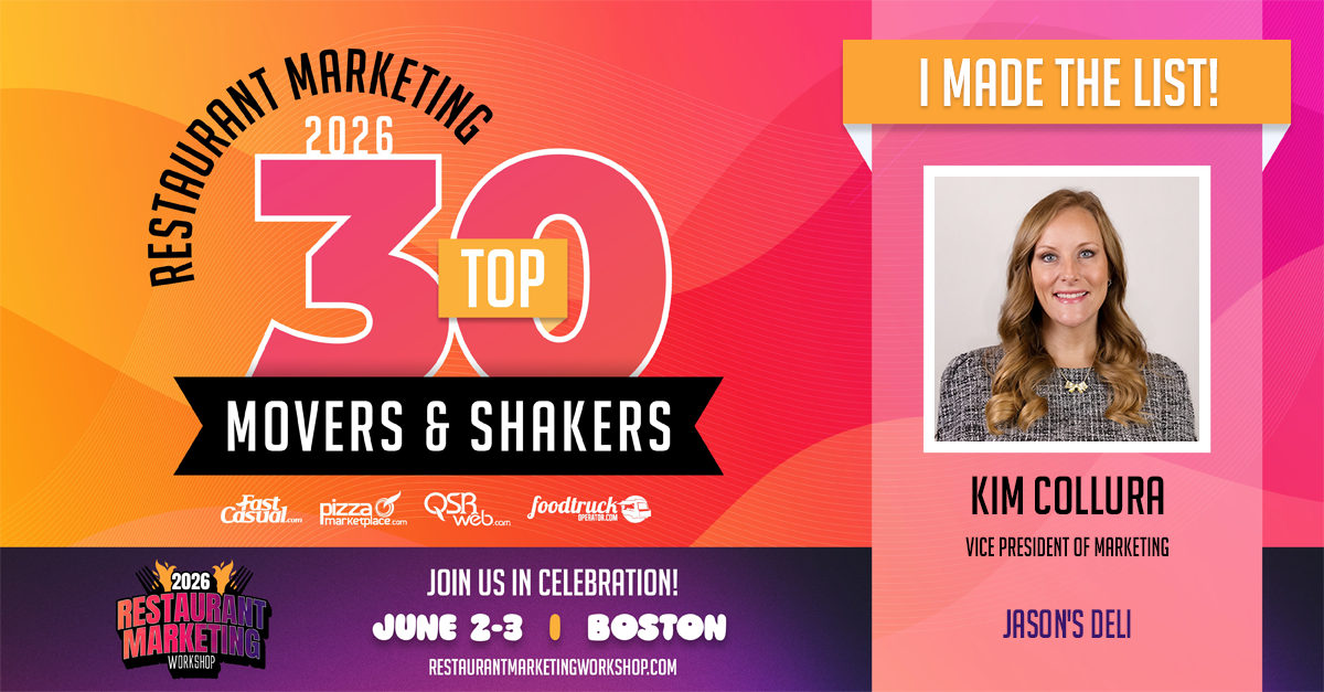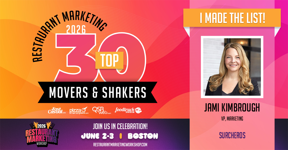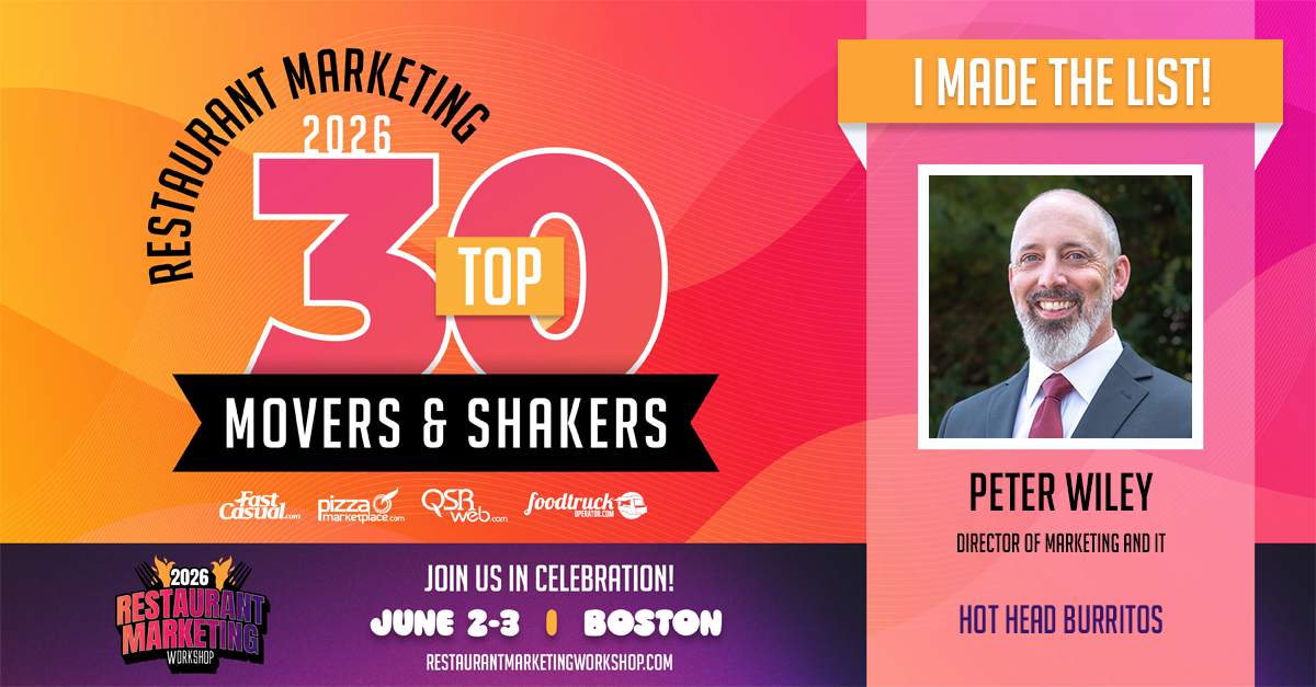 We’re proud to honor the 2026 Restaurant Marketing Top 30 Movers & Shakers, who will be recognized at the Restaurant Marketing Workshop on June 2–3 in Boston. Registration is open.