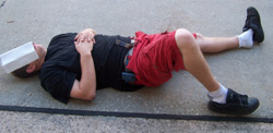 When the trucks were unloaded, Siler Chapman caught a 15-minute nap on the concrete. |