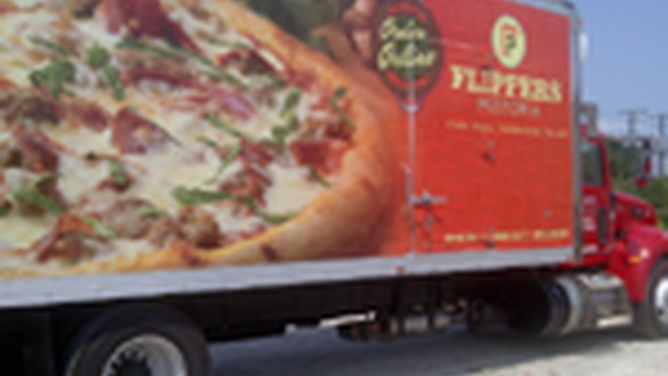 Flippers Pizzeria has rolled out four delivery trucks covered with the company's logo and pizza photos.
