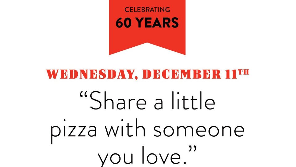1959 was the year when Round Table Pizza emerged on a very different world and restaurant scene from those of today. But on Dec. 11, when the brand officially turns 60, it's planning to throwback a little to 1959, at least in price, by offering diners to buy a large pizza at regular price and get a second one-topping large pizza for the 1959 price of $2.80 for dining in or carrying out, according to a news release.