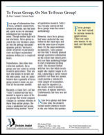 Focus-group research has also become a popular tool for getting consumers opinions quickly, because it allows observers to personally view and digest respondents opinions within just a couple of hours. Nevertheless, like other data collection methods, focus groups are best suited to certain research applications. They are only one means to an end, not the only means. And yet, many believe that a spoonful of focusgroup research alone can provide all the answers needed.
